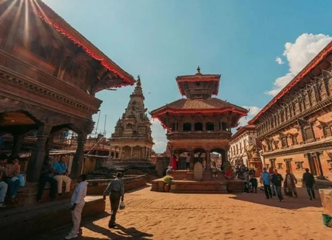 早餐后前往帕坦杜巴廣場,廣場呈長方形,東邊是皇宮,塔萊珠女神廟、金廟、曼嘉噴水池等,西 邊則是造型各異的廟宇,其中最為著名的是黑天神廟、黑天寺、哈里??ㄉ駨R、毗濕奴神廟、 毗斯瓦納特神廟等。其建筑藝術(shù)也非常高超、精湛,在世界建筑史上占有一席之地,被稱為 "露天的博物館"。游覽始建于 2000 多年前的世界上最輝煌的佛教寺廟“斯旺那布廟”(Swayambhunath 世界文化遺產(chǎn),俗稱“猴山”) 【約 1.5 小時(shí)】,來這里祭祀 的有尼佤爾尼姑、藏族喇嘛、佛教及印度教之貴族朝圣者,也許斯旺那布塔是觀察尼泊爾各個(gè)宗教融洽相 處的最佳地方。整體建筑古樸,味道十分濃郁,民房的窗飾極其繁復(fù),寺廟建筑的細(xì)部一樣精細(xì)。寺廟、 佛塔、銅飾等組合在一起,再加上成群的鴿子飛來飛去,成群的猴子蹦來蹦去,形成獨(dú)特的景觀。游覽始建于 13、14 世紀(jì)的巴德崗杜巴廣場(Bhaktapur Durbar Square 世界文化遺產(chǎn))【約 2 小時(shí)】:55 窗宮(The Palace of 55 windows)、 巴特薩拉女神廟(Batsala Devi)、尼亞塔波拉塔(Nyatapola Temple)等。這里可以選購著名的巴德崗木雕工藝品和陶制品。十五世紀(jì)以后,巴德崗杜巴廣場是巴德崗的城市核心,這里有長達(dá)500 年馬拉王朝的王宮,包括許多各具藝術(shù)特色的宮殿、庭院、寺廟、雕像等,被譽(yù)為“中世紀(jì)尼泊爾藝術(shù)的精華和寶庫”,素有“露天博物院”之稱,展現(xiàn)出一幅中世紀(jì)尼泊爾的瑰麗圖畫。后前往加都以東 30 公里的美麗的尼瓦爾人村莊納加闊特(海拔:2000 米)。這里以壯美的喜馬拉雅雪山日出、日落而聞名,是著名的喜馬拉雅觀景臺。因?yàn)檫@里是加德 滿都山谷觀賞喜瑪拉雅山脈視角最廣且最佳的地方。在這里觀賞喜瑪拉雅雪山全景,喜馬拉 雅雪山就像一條玉帶橫掛在空中。如果能見度高,還能看到世界第一高峰-珠穆朗瑪峰。這 里正對著喜瑪拉雅山脈的二十多座 6000 米以上、包括珠珠穆朗瑪峰、雅安納普爾納山峰、 岡底斯圣山等世界著名雪峰的連綿山丘。(在此可以看到十座世界最高山峰中的五座)。傍晚在納加闊特度假 村內(nèi)用晚餐,品餐觀景,是有多么的愜意舒適!