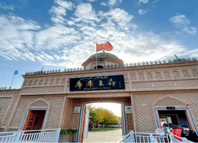 抵達后參觀中國最后一個王府【庫車王府】(游覽時間約50分鐘),游覽區(qū)主要有王府展區(qū)、龜茲博物館展區(qū)、古城墻等展區(qū)等,王府整體設(shè)計風格協(xié)調(diào),包括風格獨特的涼亭、樓閣和適合維吾爾族王室部落居住的房宅以及民族風情濃郁的小巴扎等相關(guān)建筑,巧妙融合了我國中原地區(qū)和伊斯蘭風格的建筑特色,宮殿內(nèi)通過文物展示、家族史介紹以及特色飲食等。